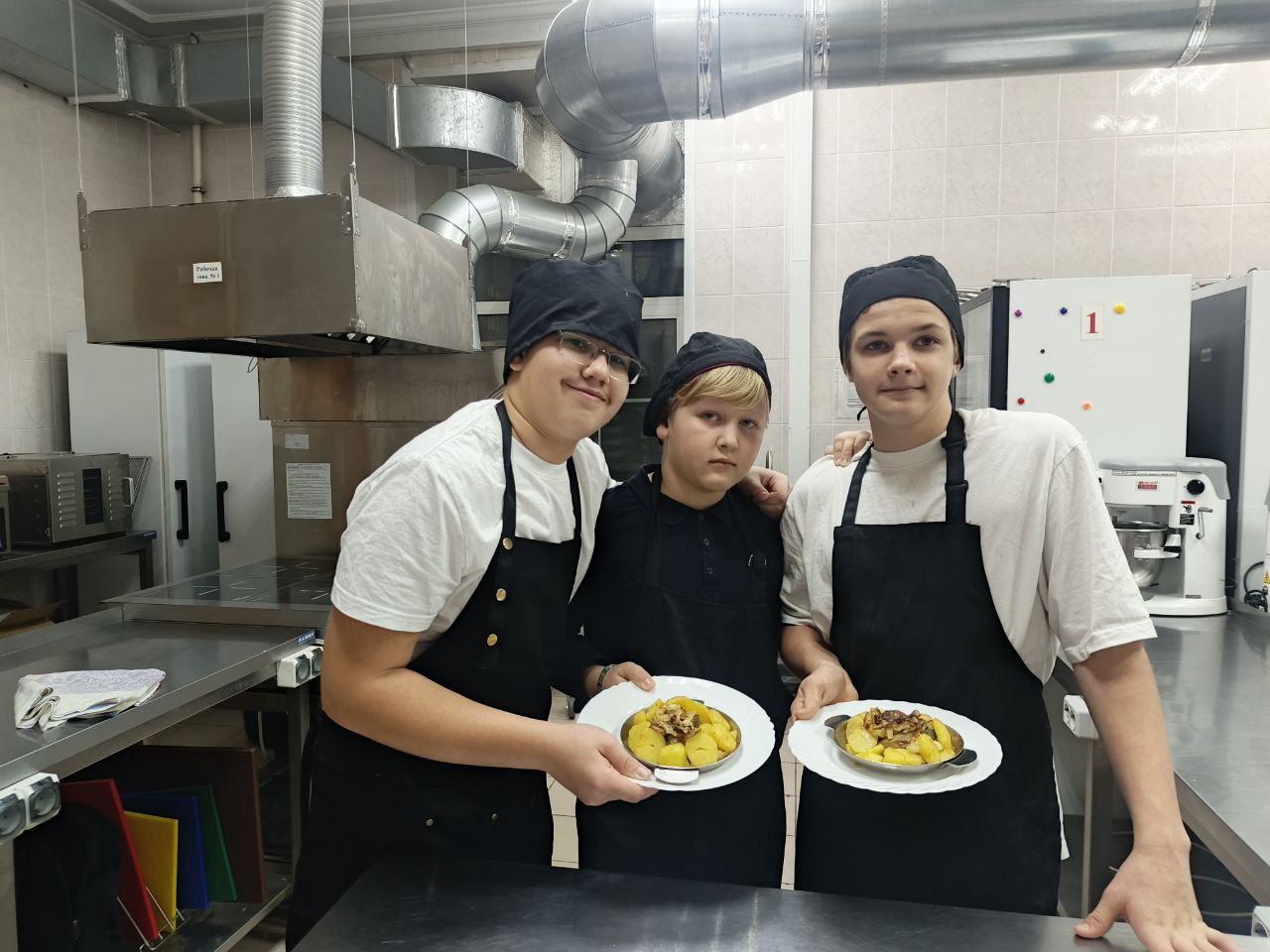 В мастерской «Кондитерское дело» школьники под руководством Белобородовой Т.П. готовили торт «Наполеон», трубочки слоеные с кремом, воздушное печенье, десерт «Золотой ключик».