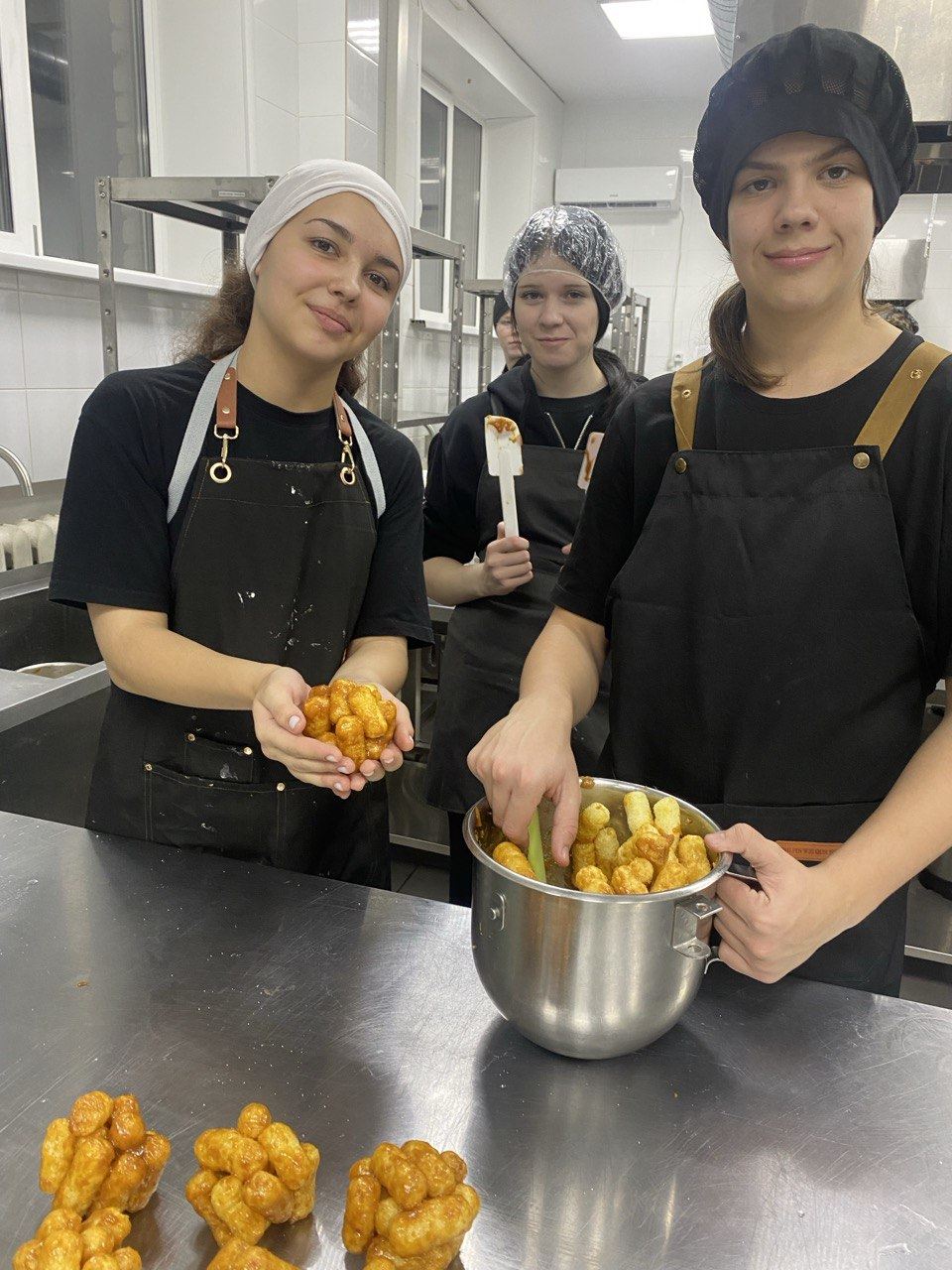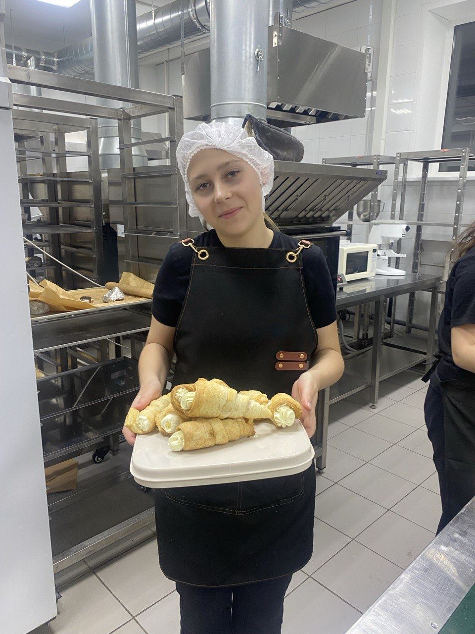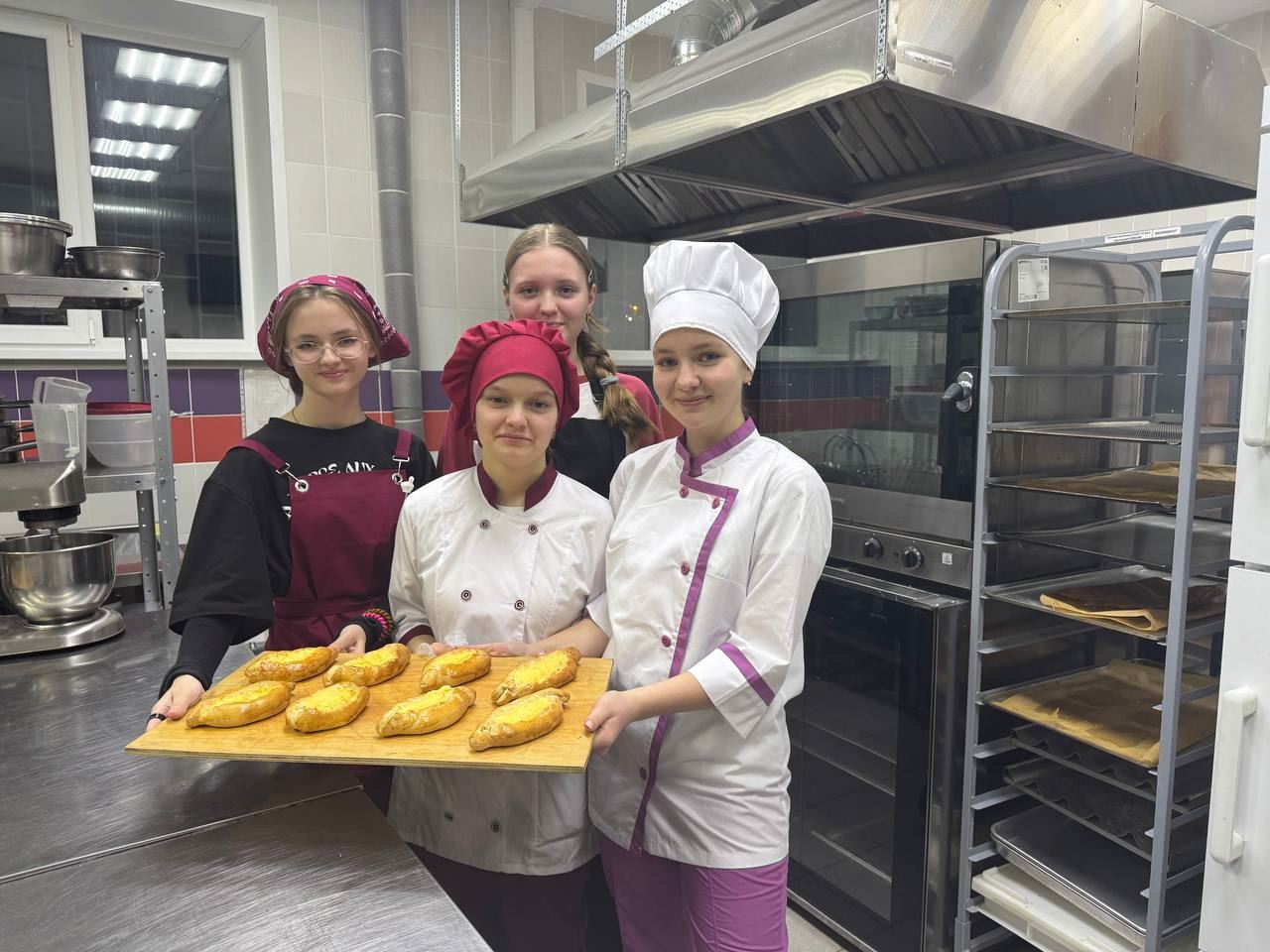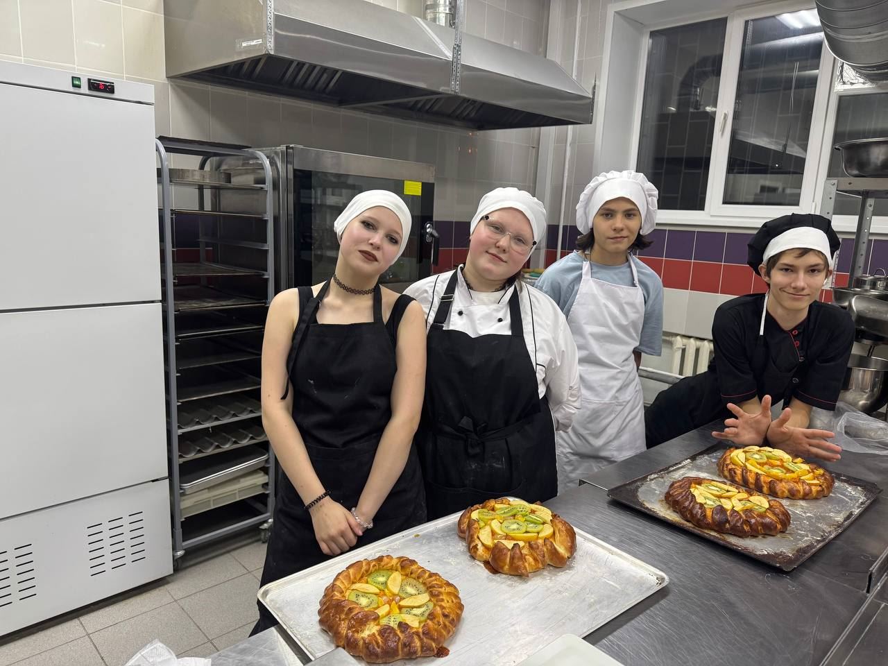 Юные Пекари с мастером производственного обучения Судаевой А.Д. на практических занятиях готовили открытый пирог с фруктовой начинкой из дрожжевого теста, бриоши с начинкой из колбасы и сыра, выпекали булочки Синабоны с творожным кремом, бублики, хачаппури с картофельно-сырной начинкой.