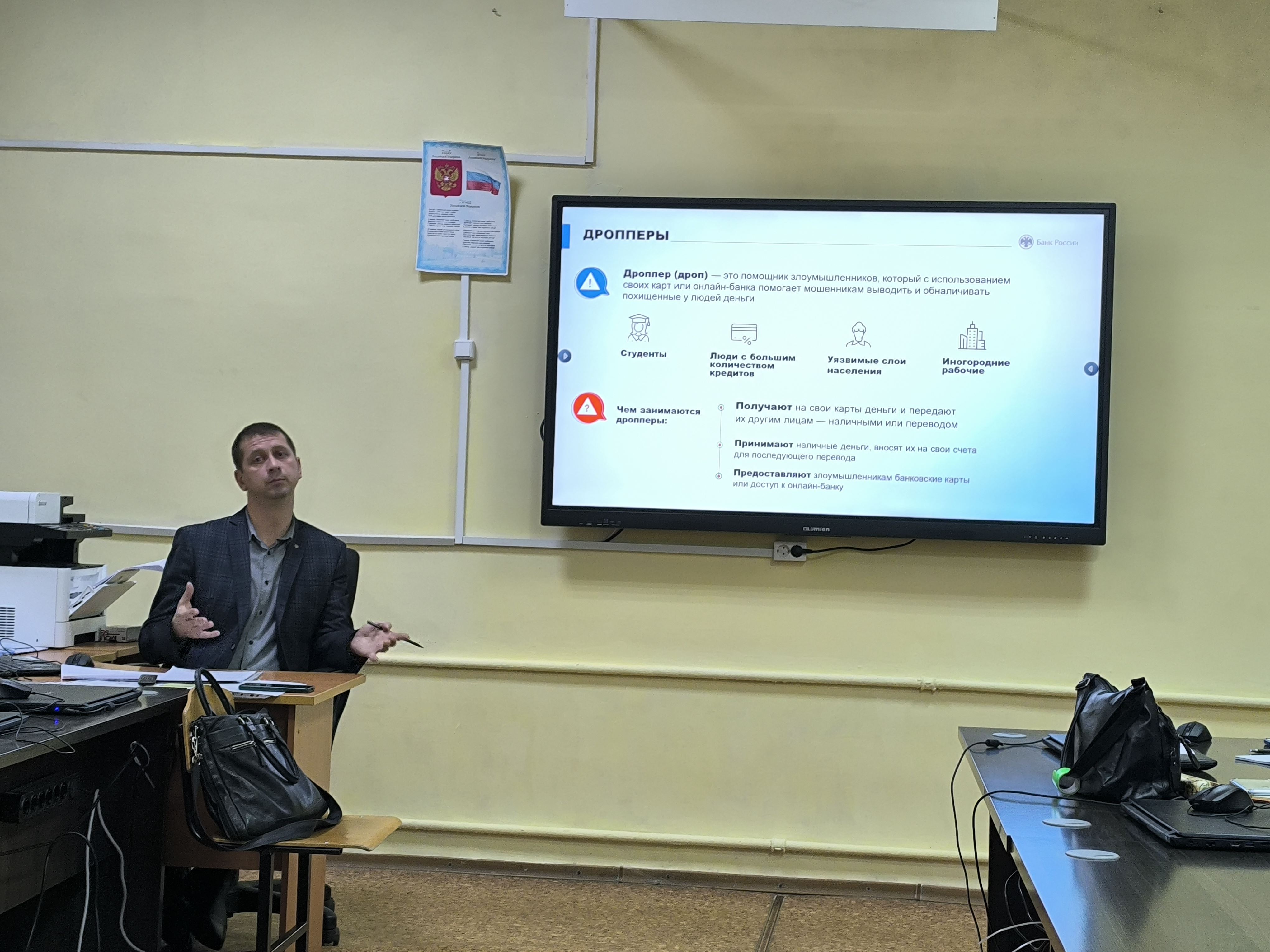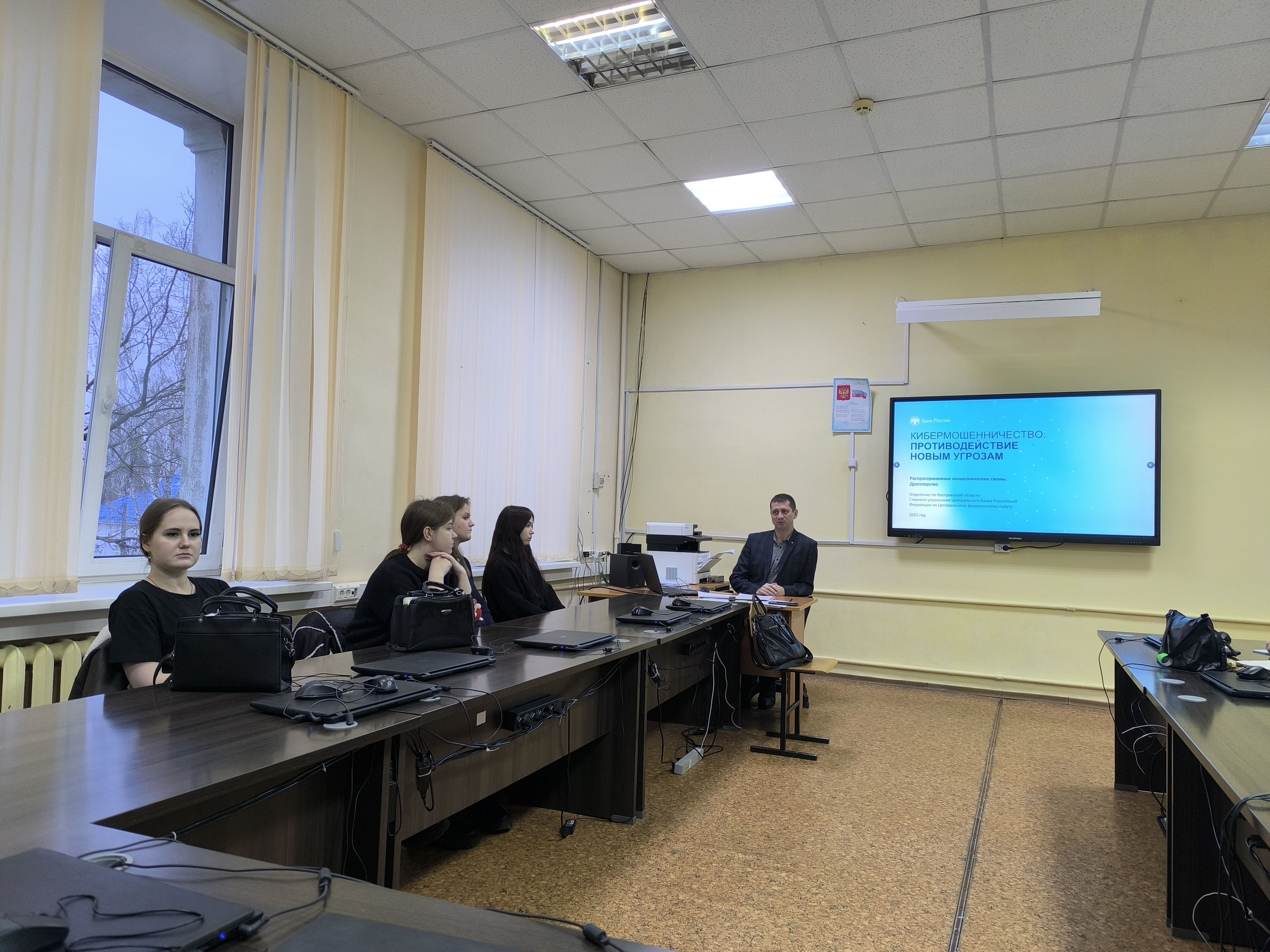25 ноября в колледже в рамках реализации программы "Азбука финансовой грамотности" состоялась встреча граждан пожилого возраста и студентов с ведущим специалистом отдела безопасности Костромского отделения Банка России - Гусевым Ильей Евгеньевичем. Тема встречи: " Кибермошенничество. Распространенные мошеннические схемы. Дропперы".