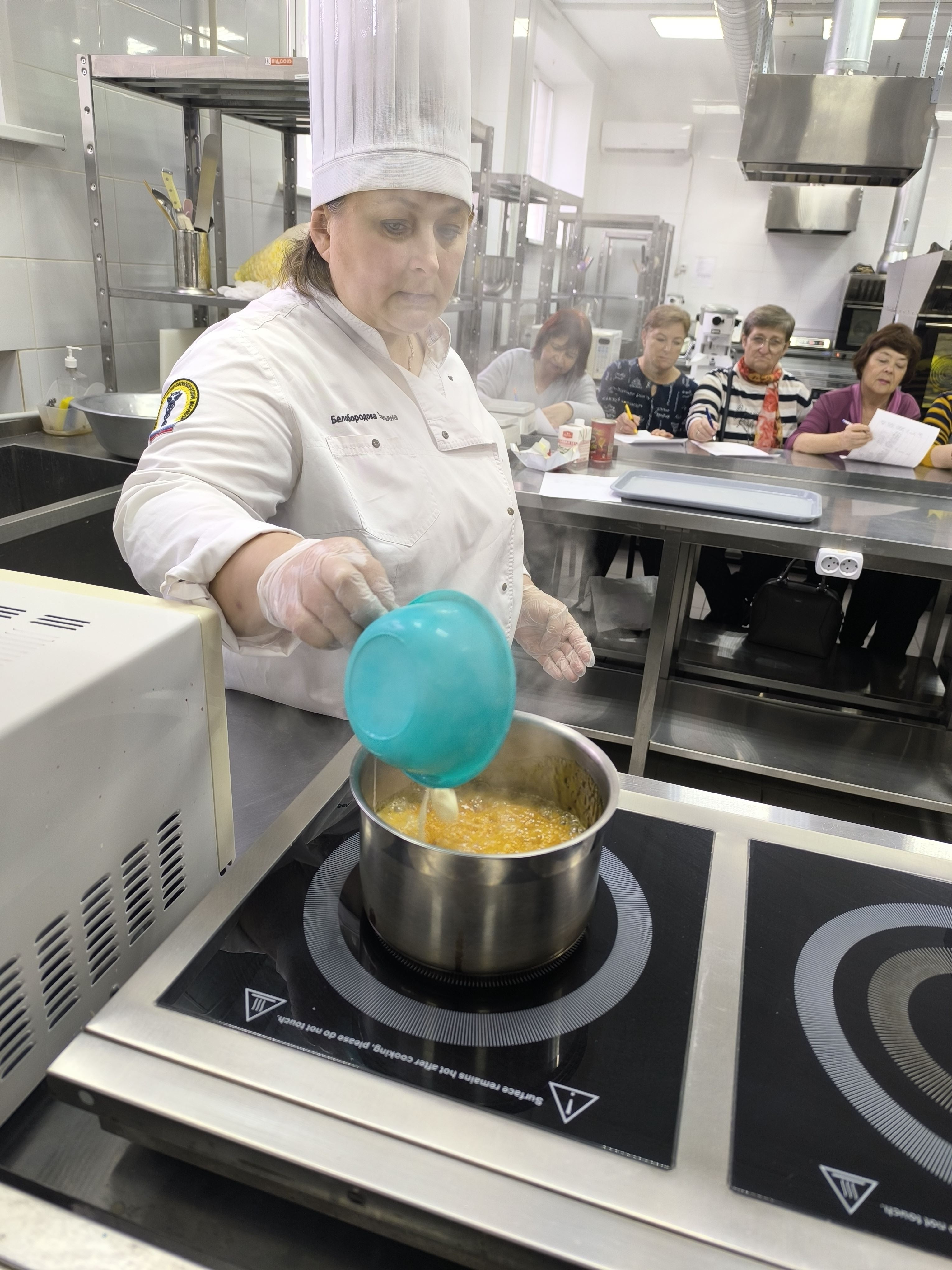 7 ноября 2025 г. в мастерской «Кондитерское дело» состоялся мастер – класс по теме: «Приготовление десерта «Золотой ключик» для представителей ветеранской организации Ленинского района «Красная гвоздика».